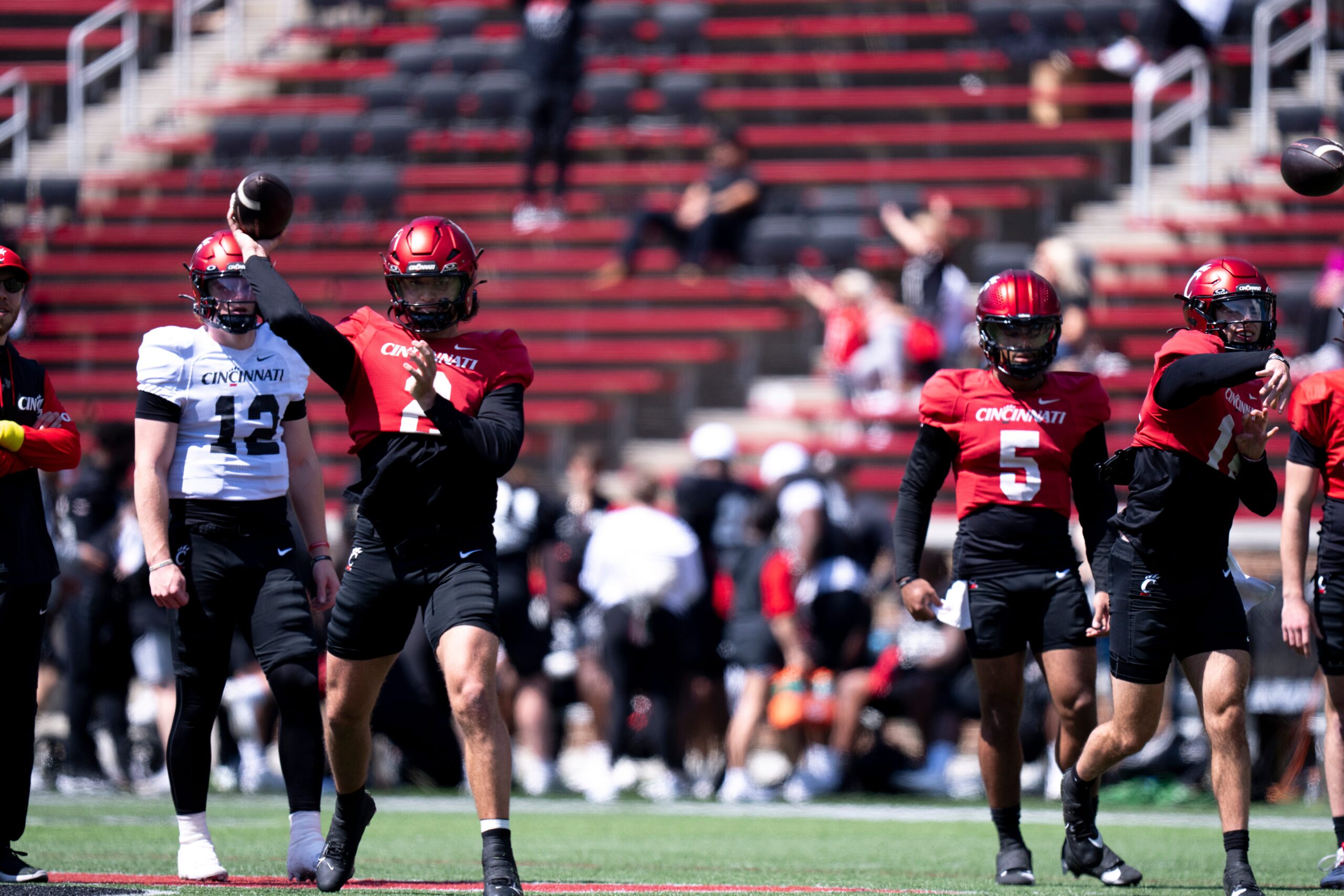 during the Cincinnati Bearcats football spring practice at Nippert Stadium on Saturday, April 12, 2025. Albert Cesare, Cincinnati Enquirer