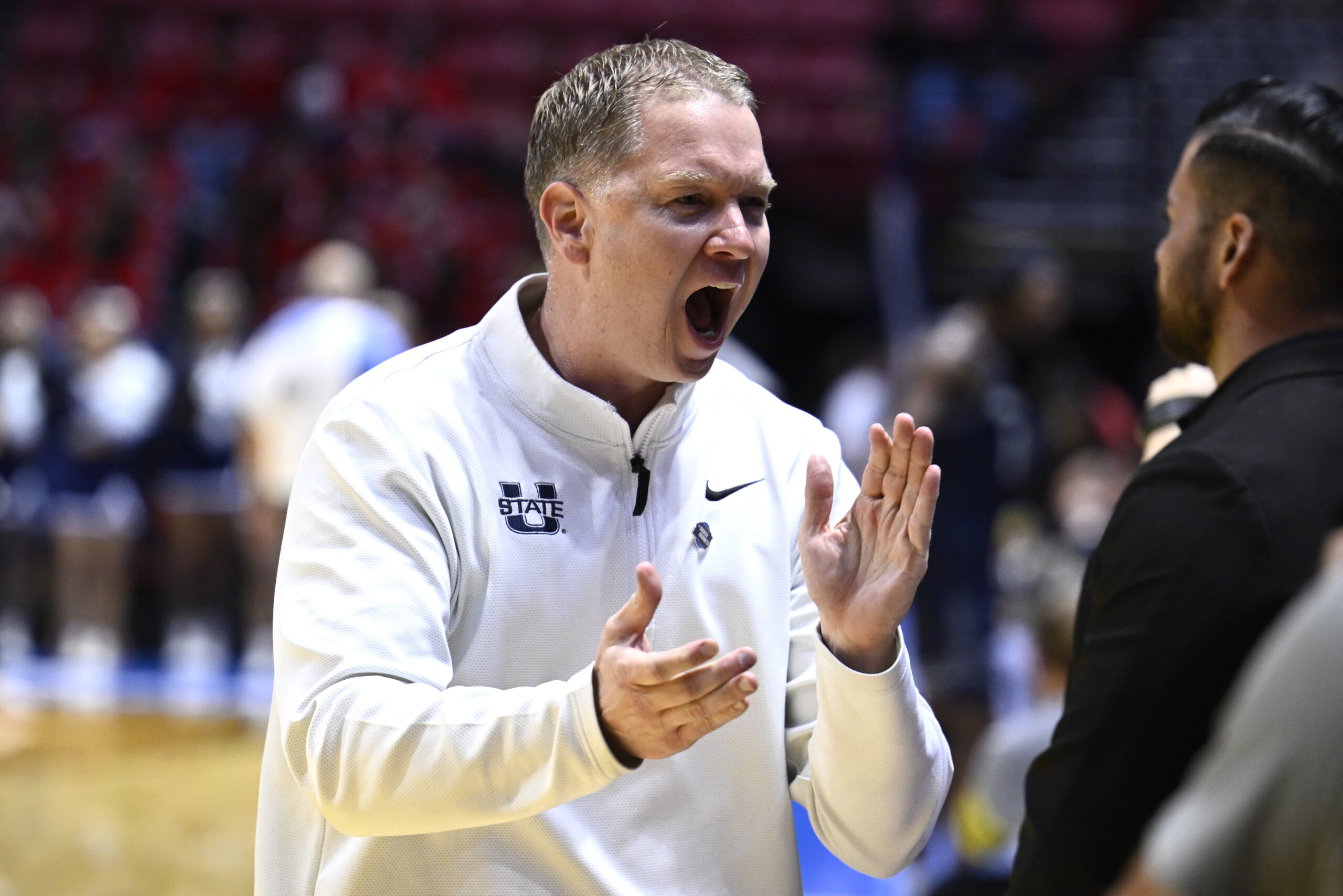By contrast, Calhoun went 55-15, including a 30-10 mark in Mountain West play, with a pair of NCAA Tournament appearances in his two seasons in Logan. His Aggies won the Mountain West regular-season and tournament championships in 2026. He has led five All-Mountain West selections in his two seasons, including 2026 Mountain West Player of the Year Mason Falslev. Calhoun’s Aggies rallied from 10 points down in the second half in the first round and beat Villanova, 86-76, before falling to No. 1 West seed Arizona on Sunday.