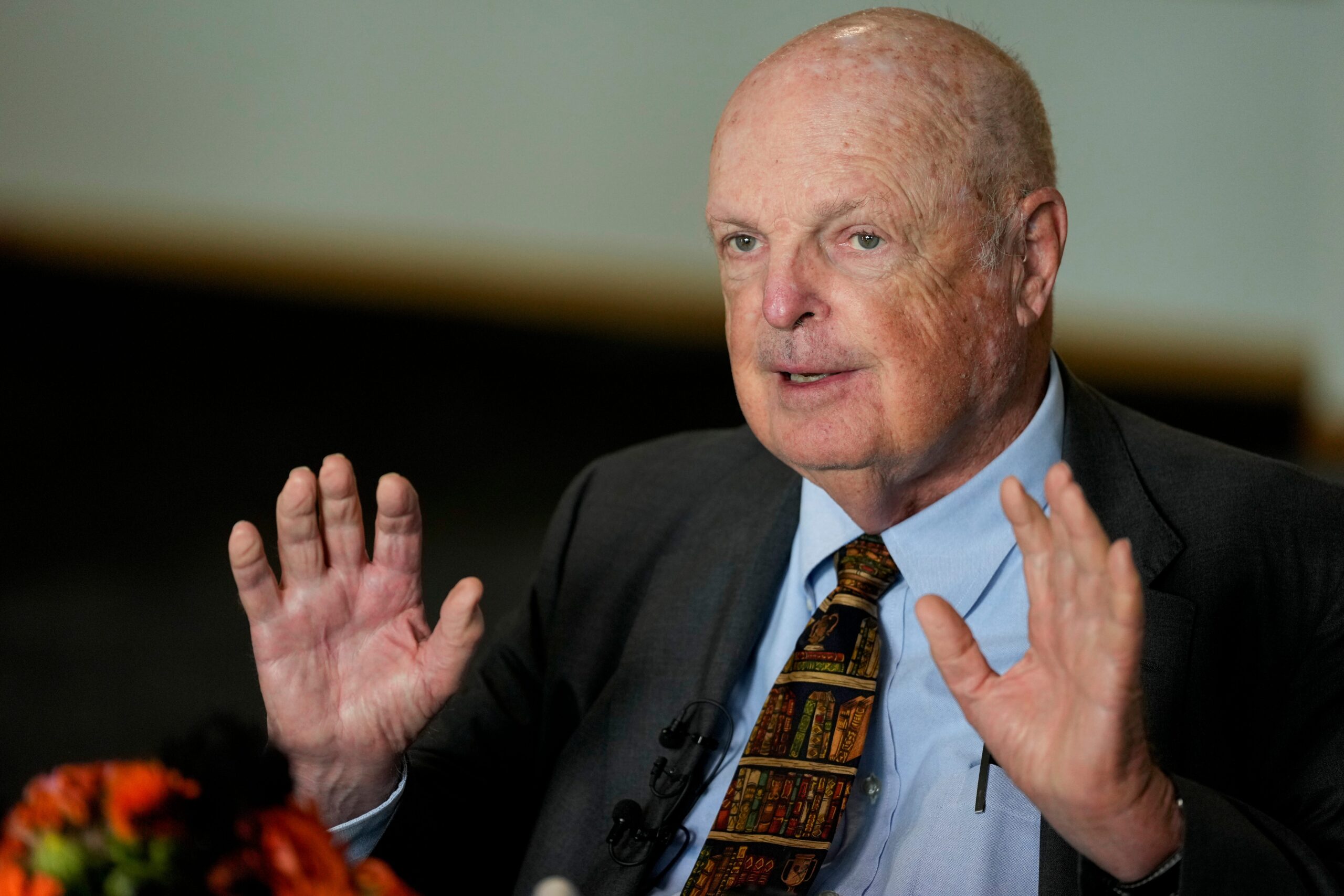 Bengals team owner Mike Brown greets the press during the annual Cincinnati Bengals media day event at Paycor Stadium in downtown Cincinnati. (Imagn Images)