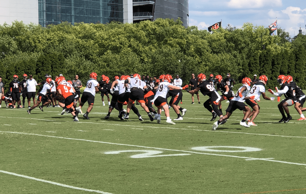 Three receivers to watch for different reasons. Tate has been opening a lot of eyes with his work on sideline patterns, his ability to high-point catches and compete for the ball. At 6-5, Tate is not only a great target, he’s added hands and competitiveness to go with it. Chase has been your typical rookie first-rounder in camp. He’s shown glimpses of his ability to separate at the top of routes but not off the break. That’s got to improve and given his exceptional ability and the chance to work with Burrow again, likely will. He’s also had some ball security moments in practice. Again, that improves with technique and drills and nothing to panic about.