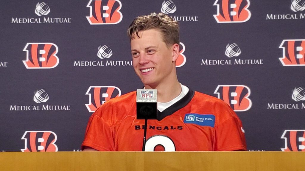That was his entire approach throughout early 2021 when he was coming back from his left knee ACL injury. Burrow’s offseason consisted of a couple of days of rest and then back at it, which he did offer up to reporters Tuesday, following a second straight practice without a brace on either knee.