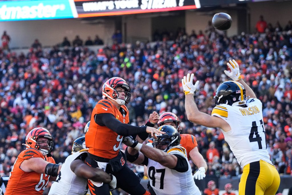 The Bengals had three different seven-point leads in the first half but Pittsburgh fought back each time. Burrow was strip-sacked by T.J. Watt with five minutes left in the second quarter and recovered by Preston Smith.
