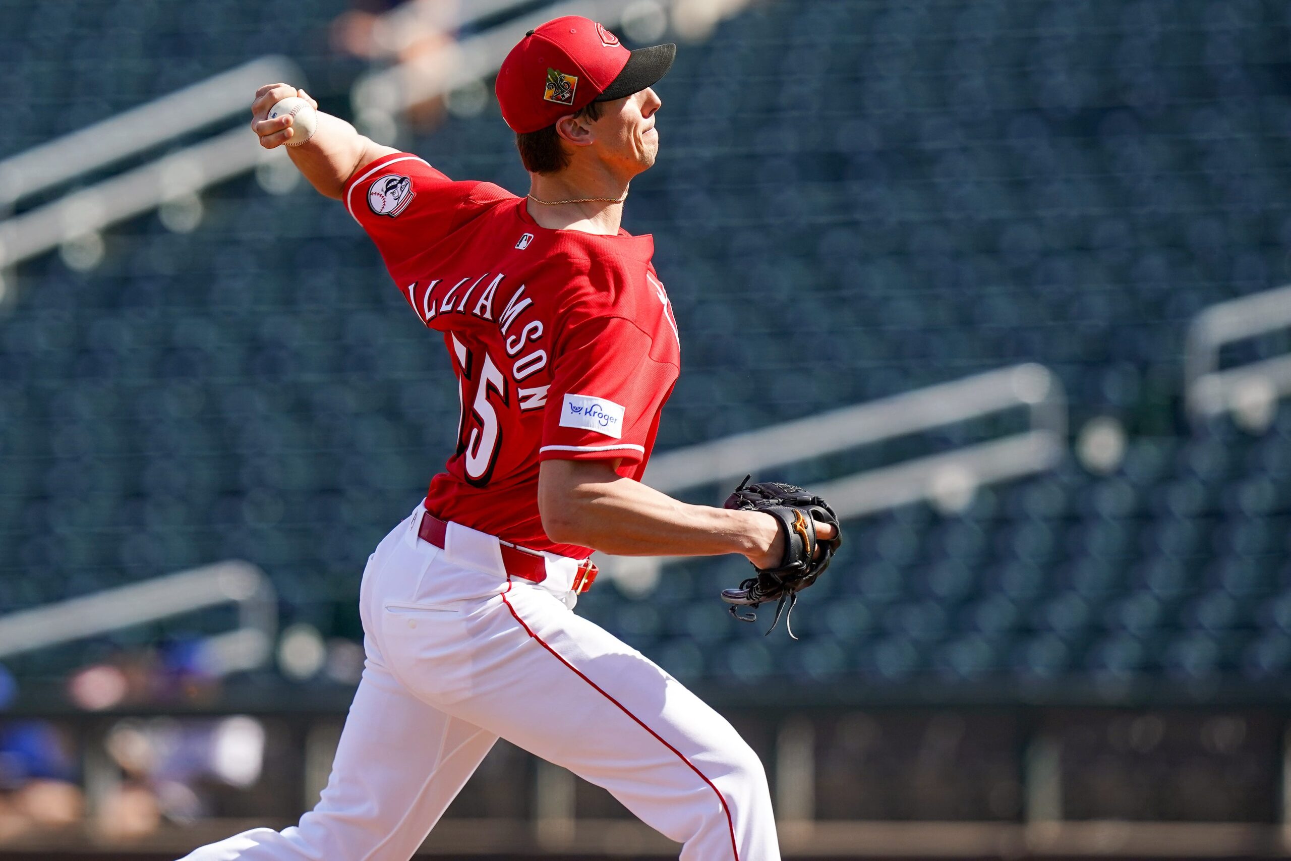 Williamson currently has two minor-league options remaining, which may influence the final roster decision if the Reds prioritize easing his workload after nearly two years away from competitive play.