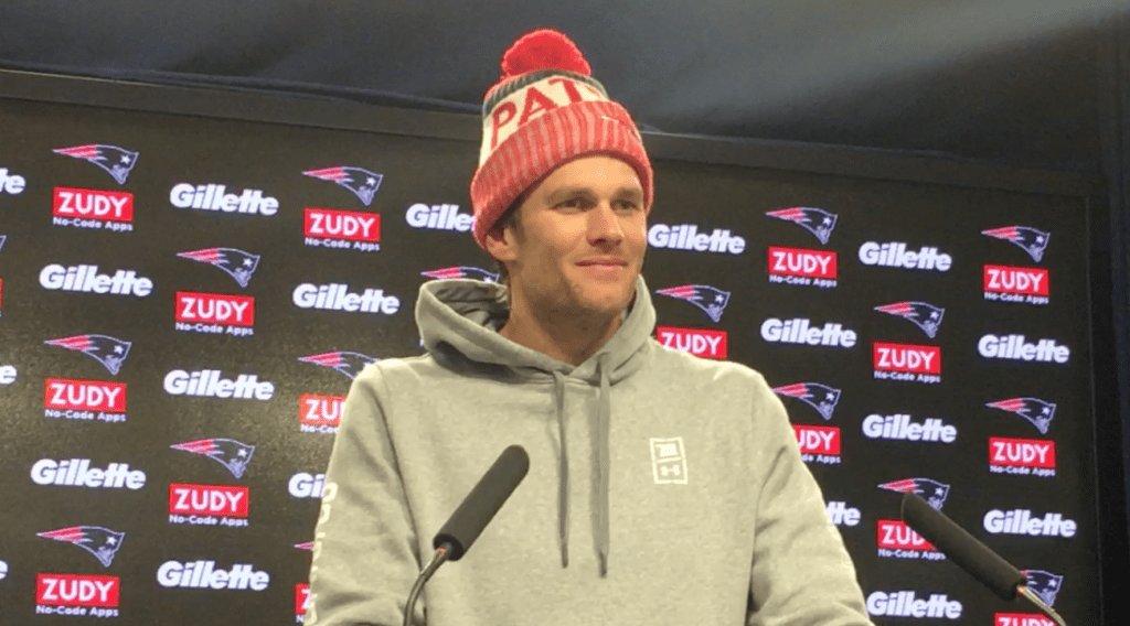 “Yeah, we’ll stick to football this week, too,” Brady said with a sheepish smile. “So, I like that no distractions part. Thank you.”